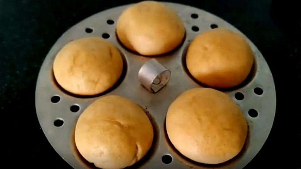 9.తర్వాత అడుగు మందంగా ఉన్న గిన్నెను తీసుకోని అందులో స్టాండ్ ను అమర్చుకోని తయారు చేసుకున్న బన్స్ ను పాలతో తడుపుకోవాలి.