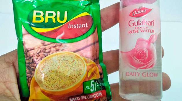 ఒక బౌల్ లో ఒక స్పూన్ కాఫీ పొడి, ఒక స్పూన్ ఆలోవెరా జెల్, ఒక vitamin e capsule లోని ఆయిల్, అరస్పూన్ రోజ్ వాటర్ పోసి అన్నీ ఇంగ్రిడియన్స్ బాగా కలిసేలా కలుపుకోవాలి. ఈ మిశ్రమాన్ని ముఖానికి రాసి పది నిమిషాలు అయ్యాక సున్నితంగా మసాజ్ చేసి 5 నిమిషాలు అయ్యాక ముఖాన్ని శుభ్రం చేసుకోవాలి.