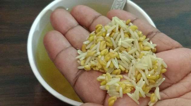 ఒక బౌల్ లో రెండు స్పూన్ల మెంతులు, రెండు స్పూన్ల బియ్యం వేసి నీటిని పోసి నాలుగు గంటలు నానబెట్టి ఆ తర్వాత ఆ నీటిని వడకట్టి జుట్టుకి పట్టించి అరగంట తర్వాత కుంకుడుకాయలతో తలస్నానం చేయాలి. ఈ విధంగా వారంలో రెండు సార్లు చేస్తే మంచి ఫలితం వస్తుంది.