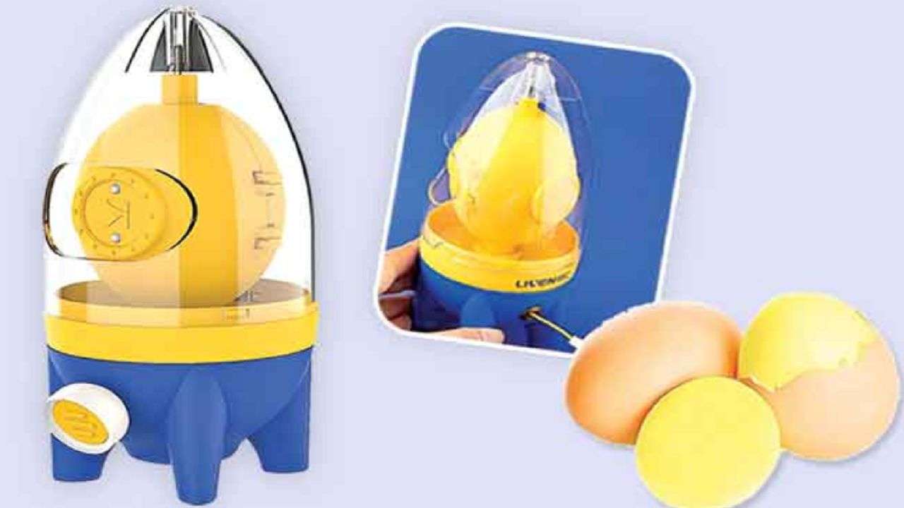 ఇక అప్పుడు పచ్చ సోన, తెల్లసొన అనే మాటే ఉండదు.ఎలా అంటే.. దానిని మాన్యువల్ ఎగ్ మిక్సర్ తో దానిని సాధ్యం చేయవచ్చు. ఈ పరికరంలో కోడి గుడ్డును పెట్టి దానికి ఉన్న తాడును నాలుగుసార్లు లాగితే పెంకు అలానే ఉండి లోపల తెల్లసొన,పచ్చసోన కలిసిపోతుంది. ఆ తర్వాత ఆ గుడ్డును ఉడికిస్తే లోపల అంతా పసుపు రంగులో కనబడుతుంది. ఈ విధంగా రెండు సోనలు కలవడం వలన గుడ్డు రంగు మాత్రమే కాకుండా రుచి కూడా మారి చాలా బాగుంటుంది.