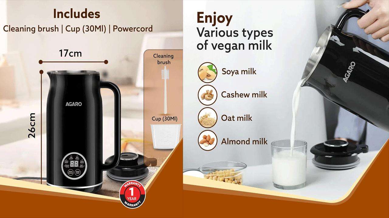 ఈ Maker తో Almonds, Soya, Oats వంటి వాటి నుండి చాలా సులభంగా పాలను తయారుచేయవచ్చు. ఇది 600W శక్తివంతమైన మోటారు మరియు మన్నికైన స్టెయిన్‌లెస్ స్టీల్ బ్లేడ్‌లను కలిగి ఉంటుంది.