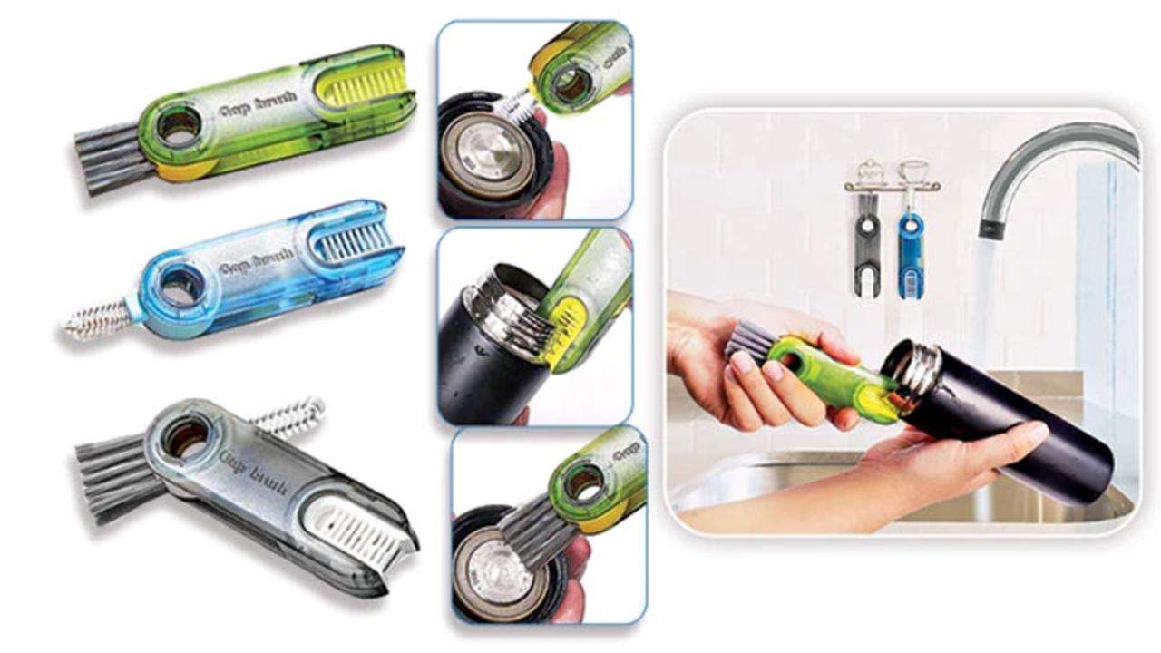 మూత అంచులూ, లోపలా మురికి పేరుకుపోయి ఉంటుంది. దీన్ని శుభ్రం చేయటానికి Multipurpose bottle cleaning brush సహాయపడుతుంది.