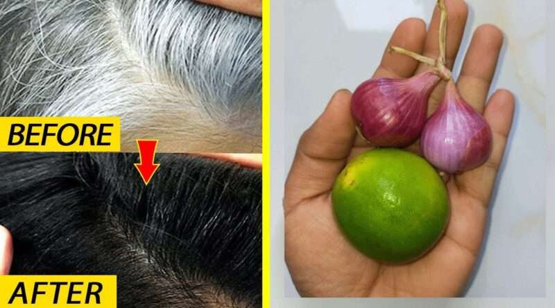 ఉల్లిపాయ,నిమ్మకాయ తెల్లజుట్టును నల్లగా మార్చటంలో సహాయపడతాయి. ఉల్లిపాయను జుట్టు సంరక్షణలో చాలా పురాతన కాలం నుండి ఉపయోగిస్తున్నారు. ఉల్లిపాయ రసంలో క్వెర్సెటిన్ మరియు విటమిన్ సి వంటి యాంటీ ఆక్సిడెంట్లు సమృద్దిగా ఉండుట వలన తెల్లజుట్టును నల్లగా మార్చుతుంది.