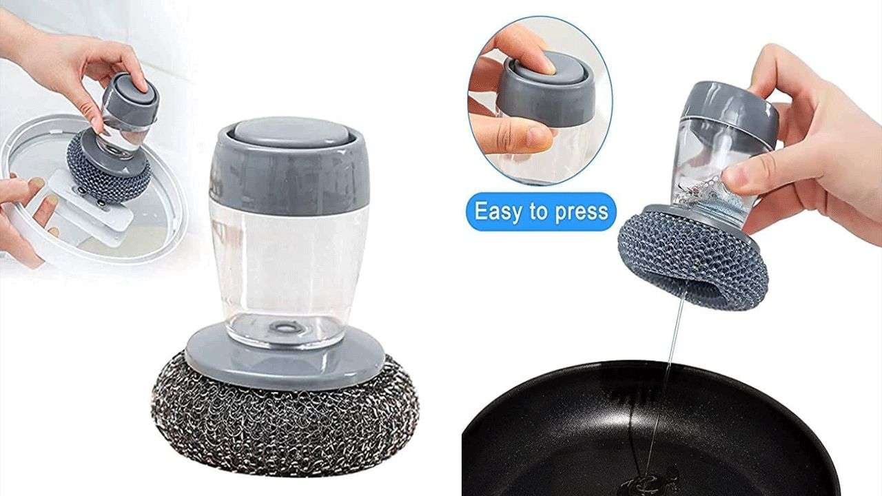 పైభాగంలో లిక్విడ్ స్టోరేజ్ ఉంటుంది. కావాల్సినంత లిక్విడ్ని నొక్కుతూ గాయాలు కాకుండా మాడిన గిన్నెలను సులువుగా శుభ్రం చేసుకోవచ్చు. లిక్విడ్ అవసరమైనప్పుడల్లా పై బటన్ని నొక్కితే చాలు. బాగుంది కదూ.. మీకు నచ్చితే ఇప్పుడే ఆర్డర్ పెట్టేయండి.