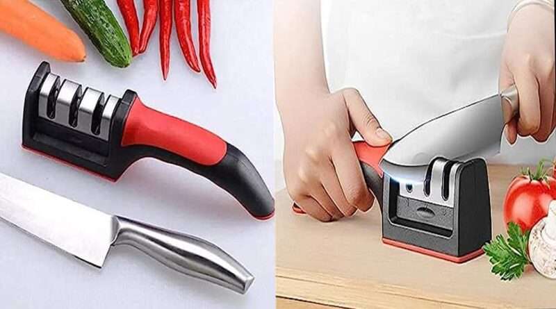 చాకు పదును పెట్టే వస్తువు మనకు online లో అందుబాటులో ఉంది. 3 స్టేజ్ షార్ప్ నర్ తో వస్తుంది. వాడుకోవడం కూడా సులువే. ఇది స్టెయిన్ లెస్ స్టీల్, ప్లాస్టిక్ మెటీరియల్ తో తయారుచేయబడింది.