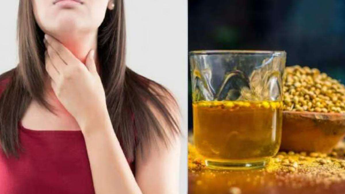 కాస్త ఓపికగా చేసుకోవాలి. ఒక కప్పు నీటిలో రెండు స్పూన్లు ధనియాలు వేసి బాగా మరిగించి ఆ నీటిని వడగట్టి తేనె కలిపి తాగాలి. ఈ విధంగా ప్రతిరోజూ తీసుకుంటూ ఉంటే థైరాయిడ్ సమస్య తగ్గుతుంది.