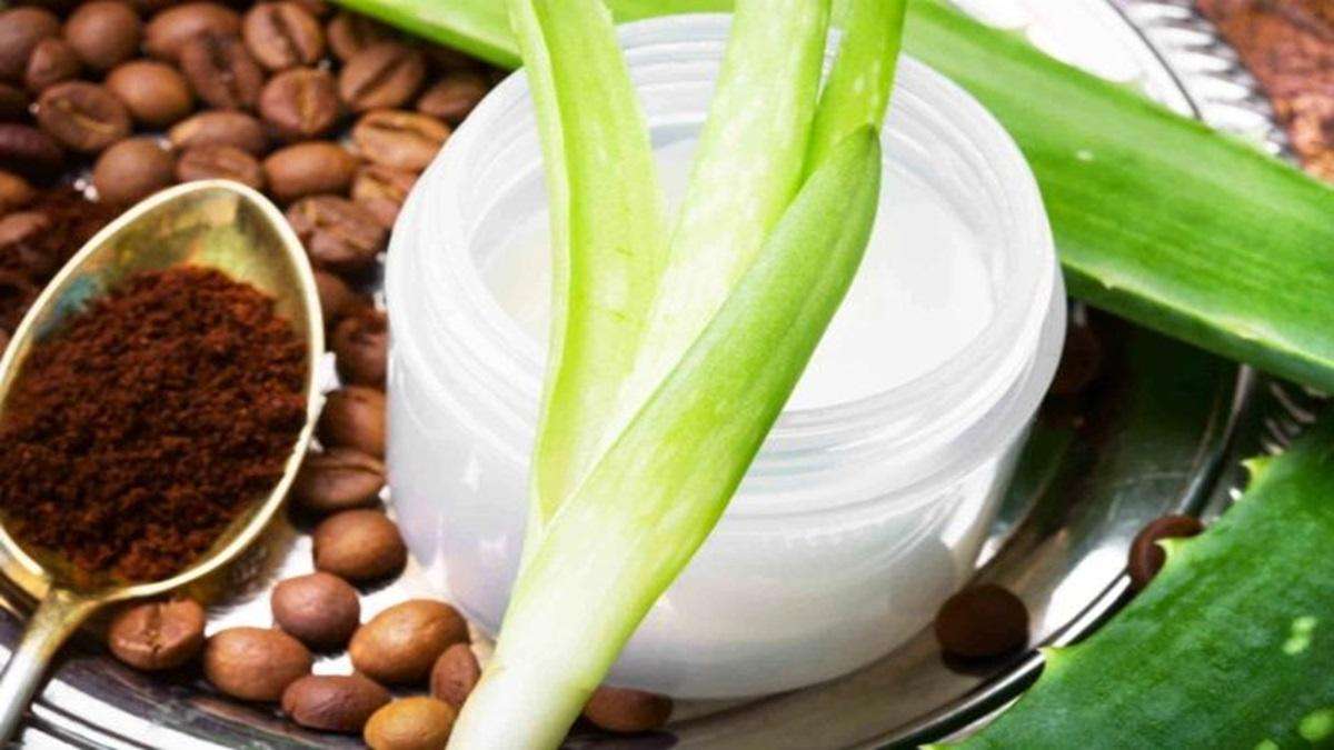 దీని కోసం కలబందను తీసుకొని సైడ్స్ లో ఉండే బాగాన్ని కట్ చేసి చిన్న చిన్న ముక్కలుగా కట్ చేసి మిక్సీ జార్ లో వేయాలి. ఈ ముక్కలు ఒక కప్పు ఉండేలా చూసుకోవాలి. దీనిలో ఒక స్పూన్ కాఫీ పొడి, ఒక స్పూన్ టీ పొడి వేసి అవసరమైన నీటిని పోసి మెత్తని పేస్ట్ గా చేసుకోవాలి.