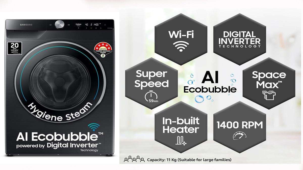 ఇప్పుడు చెప్పే samsung మెషీన్ లో AI Ecobubble, Super Speed, Wi-Fi, Hygiene Steam with Inbuilt Heater, Digital Inverter వంటి ఎన్నో features ఉన్నాయి.