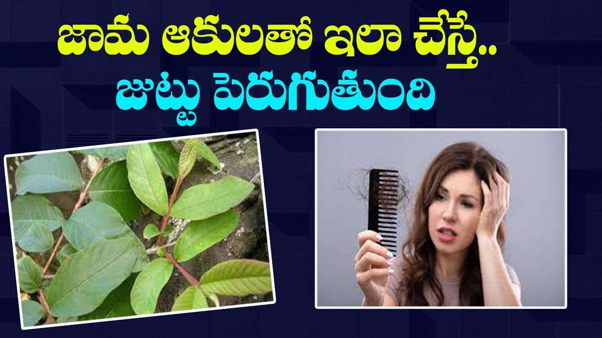 జామ ఆకులను శుభ్రంగా కడిగి నీటిలో వేసి 5 నుంచి 7 నిమిషాల వరకు బాగా మరిగించాలి. మరిగిన నీటిని వడకట్టి జుట్టుకి పట్టించి రెండు నిమిషాలు మసాజ్ చేసి అరగంట అయ్యాక కుంకుడు కాయలతో తలస్నానం చేయాలి. పైన చెప్పిన ఏ పద్దతి ఫాలో అయిన పర్వాలేదు. జుట్టు రాలకుండా ఒత్తుగా,పొడవుగా పెరుగుతుంది.