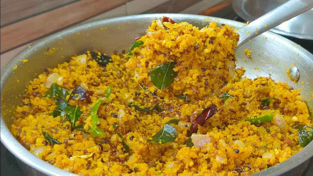 ఇవి కొంచెం వేగిన తర్వాత ఉల్లి తరుగు వేసి వేగించాలి. ఇప్పుడు రుబ్బి ఉంచుకున్న ముద్దను వేసి అన్నింటిని బాగా కలిపి మూత పెట్టాలి. మంట బాగా తగ్గించి పెట్టాలి. దీనిని మధ్య మధ్యలో కొద్ది కొద్దిగా నూనె వేస్తూ కలపాలి. దీనికి నూనె ఎక్కువగా అవసరం అవుతుంది. ఒక అరగంట అయిన తర్వాత ఈ మిశ్రమం విడివిడి లాడినట్లు అవుతుంది. అప్పుడు పొయ్యి మీద నుంచి దించేయాలి. దీనిని అన్నంలో కలుపుకొని తింటే చాలా బాగుంటుంది.