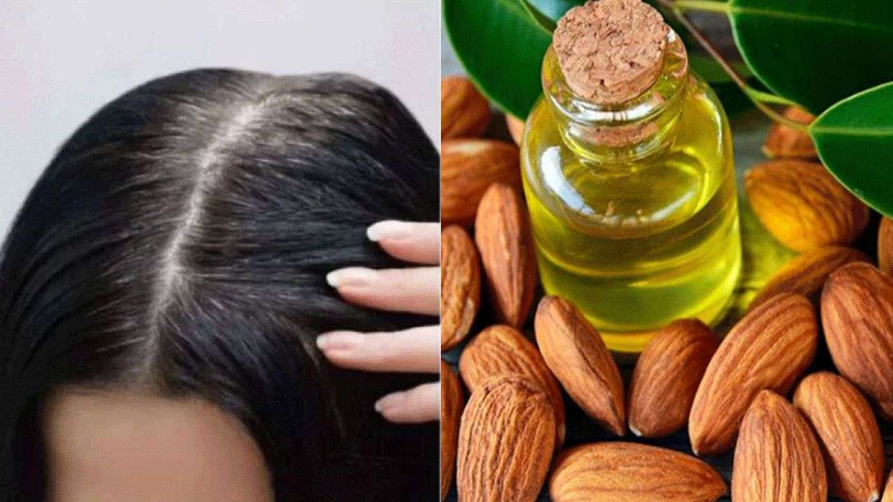 ఈ విధంగా వరలో రెండు సార్లు చేస్తూ ఉంటే తెల్లజుట్టు క్రమంగా నల్లగా మారుతుంది. బాదం నూనెలో విటమిన్ ఇ సమృద్దిగా ఉండుట వలన జుట్టు కుదుళ్ళకు బలాన్ని అందించటమే కాకుండా తెల్లజుట్టును నివారిస్తుంది.