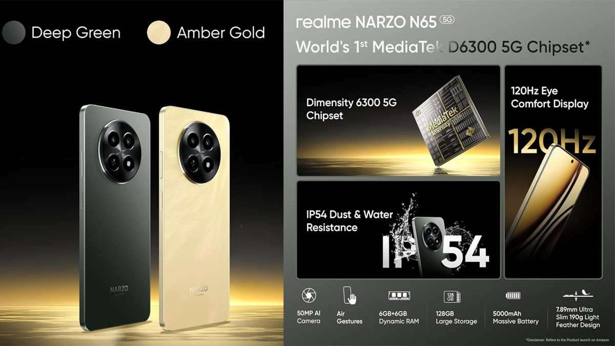 6GB RAM, 128GB స్టోరేజ్ ఉంది. ఇండియాలో మొదటి D6300 5G చిప్సెట్ కలిగిన మొబైల్. అల్ట్రా స్లిమ్ డిజైన్ కలిగివుంది. 120Hz రిఫ్రెష్ రేటు ఉంది. కళ్లకు హాని కలగదు. 50MP AI కెమెరా ఉంది. బాక్సుతో ఛార్జర్, USB కేబుల్, ఫోన్ కేసు, క్విక్ గైడ్ ఇస్తున్నారు.