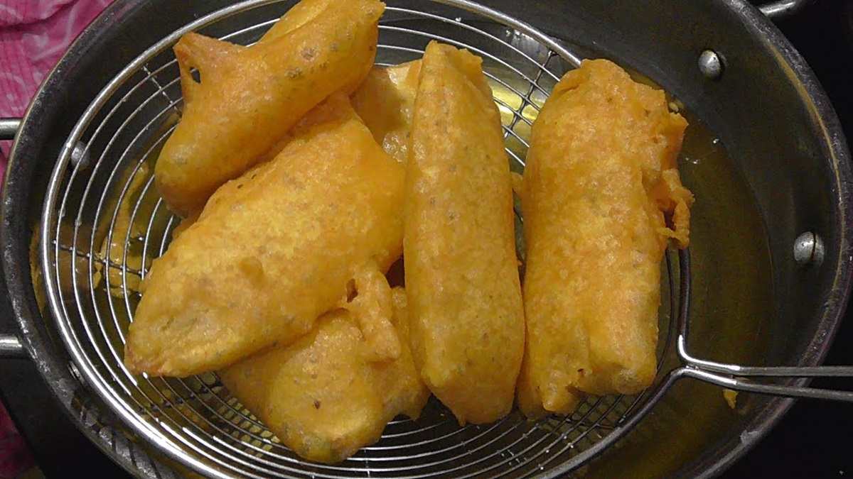 5.స్టవ్ మీడియం ఫ్లేమ్ లో పెట్టుకోని గోల్డెన్ బ్రౌన్ వచ్చే వరకు బజ్జీలను వేపుకోవాలి.