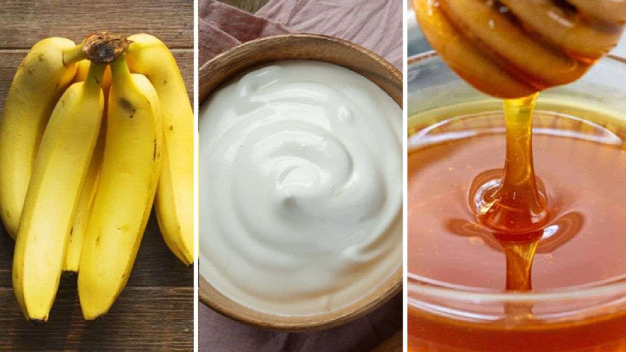 ఈ ప్యాక్ లో అరటి పండుతో పాటు పెరుగు,తేనే కూడా కలుపుతున్నాం. పెరుగు,తేనెలో ఉన్న పోషకాలు చర్మానికి పోషణ అందించి కాంతివంతం చేయటంలో సహాయపడుతుంది. బాగా పండిన అరటిపండులో సగం తీసుకోని మెత్తగా చేయాలి.