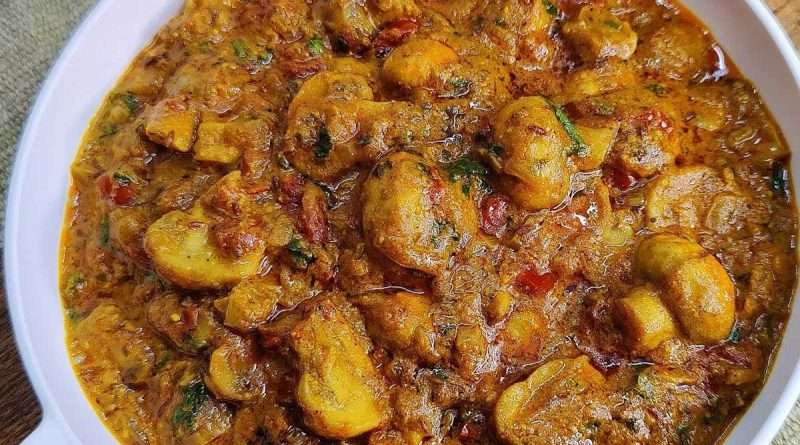 తరిగిన పుట్టగొడుగులు వేసి, మసాలాతో బాగా కలిపి 5-7 నిమిషాలు ఉడికించండి. పుట్టగొడుగులు నీరు విడుదల చేస్తాయి. అవసరమైతే 1 కప్పు నీళ్లు జోడించి, కర్రీ సాంద్రతను సరిచేసుకోండి. మూత పెట్టి 5-10 నిమిషాలు తక్కువ మంటపై ఉడికించండి. రిచ్ రుచి కోసం క్రీమ్ లేదా కొబ్బరి పాలు జోడించి కలపండి.