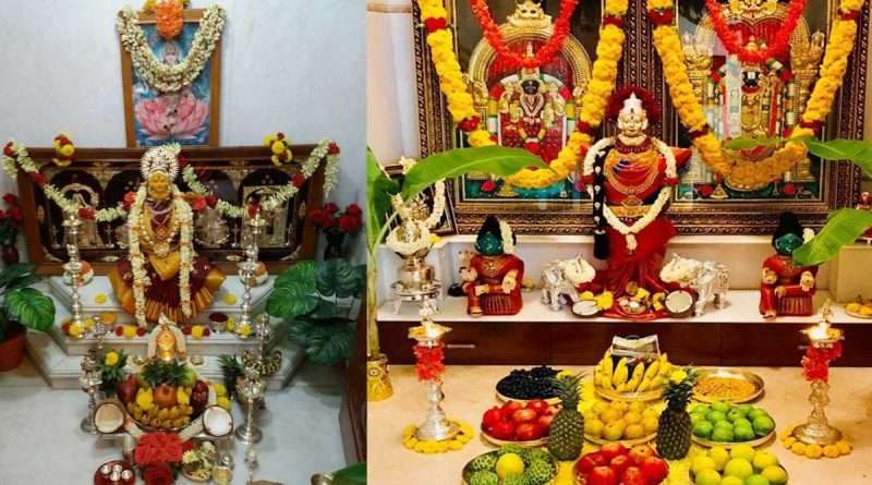 పూజా మండపం: పవిత్రమైన ప్రదేశంలో ముగ్గులు వేసి, పీటపై అమ్మవారి ప్రతిమ లేదా ఫోటోను ఉంచాలి.