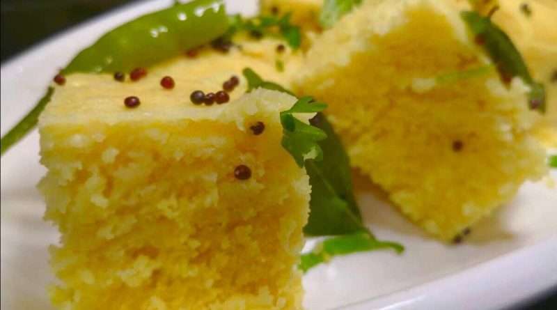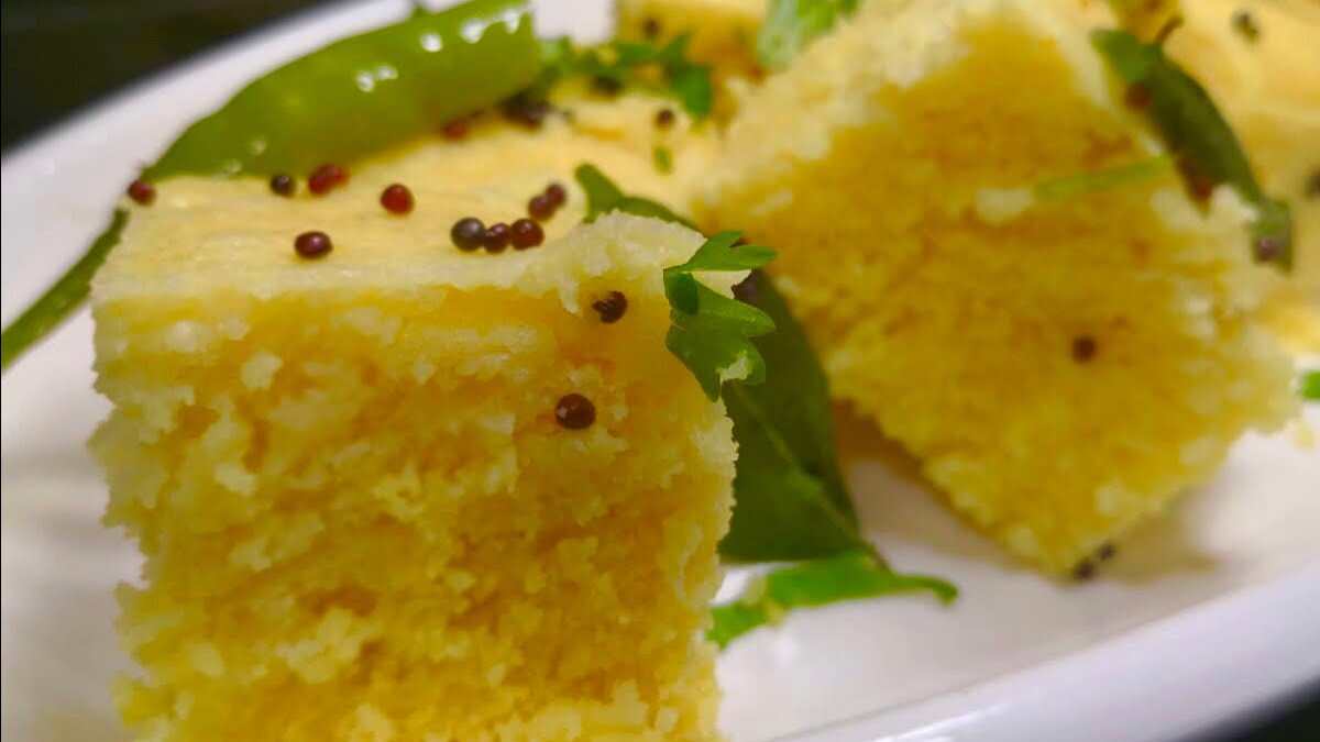 ధోక్లా పిండిలో బేకింగ్ పౌడర్, 1 టీస్పూన్ నీళ్లు వేసి కలిపి, నూనె రాసిన ప్లేట్‌లో పోసి హై ఫ్లేమ్‌పై 20 నిమిషాలు ఆవిరిలో ఉడికించండి.ధోక్లా ఉడుకుతున్నప్పుడు, ఒక చిన్న పాన్‌లో పల్లీ నూనె వేసి ఆవాలు, పచ్చిమిర్చి, ఇంగువ, కరివేపాకు వేసి తాలింపు సిద్ధం చేయండి.