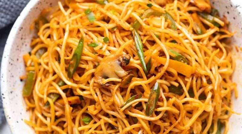 ఉల్లిపాయ ముక్కలు వేసి లేత బంగారు రంగు వచ్చే వరకు వేయించండి.క్యాప్సికమ్, క్యారెట్ ముక్కలు వేసి హై ఫ్లేమ్పై 2 నిమిషాలు వేయించండి.కూరగాయలకు సోయా సాస్, చిల్లీ సాస్, వెనిగర్, చక్కెర, ఉప్పు, మిరియాల పొడి వేసి బాగా కలపండి.ఉడికించిన నూడుల్స్ను మిశ్రమంలో వేసి, తక్కువ మంటపై 2-3 నిమిషాలు వేయించండి.