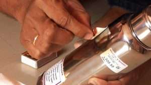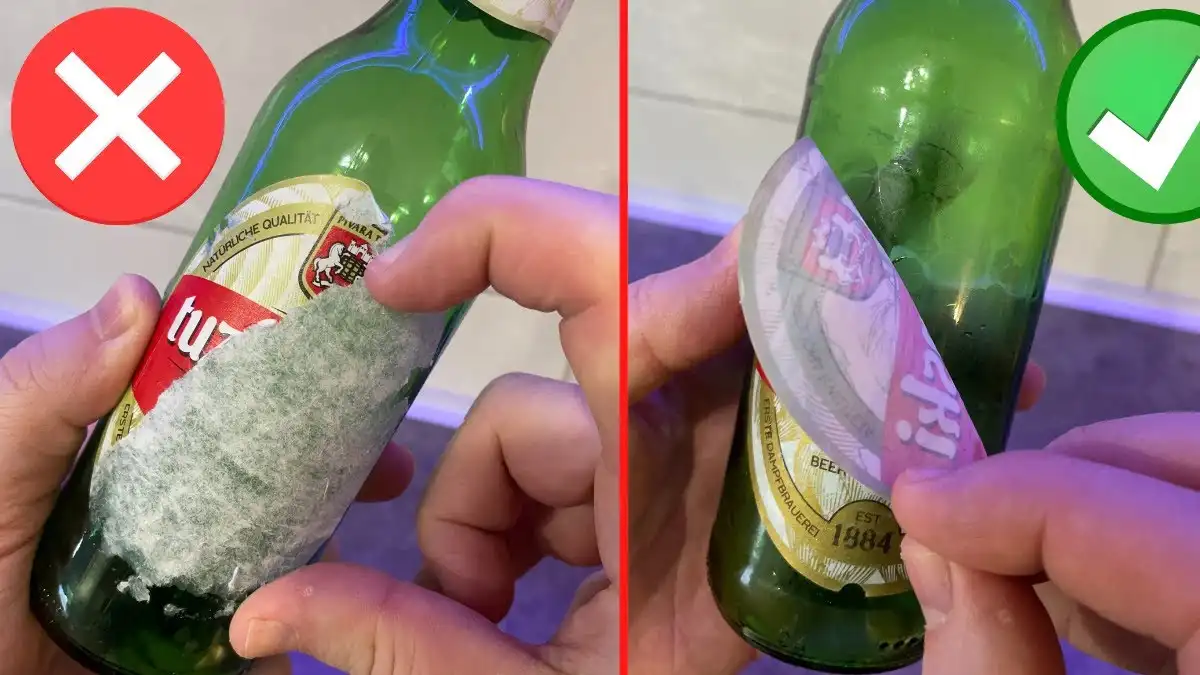 స్టిక్కర్ తొలగించిన తర్వాత, మిగిలిన అవశేషాలను తొలగించడానికి పాత్రను గోరువెచ్చని నీటిలో డిష్‌వాష్ సోప్ కలిపి 20 నిమిషాల పాటు నానబెట్టండి. గాజు పాత్రల విషయంలో మరింత జాగ్రత్త అవసరం. నానబెట్టిన తర్వాత స్పాంజ్‌తో మెల్లగా రుద్దండి.