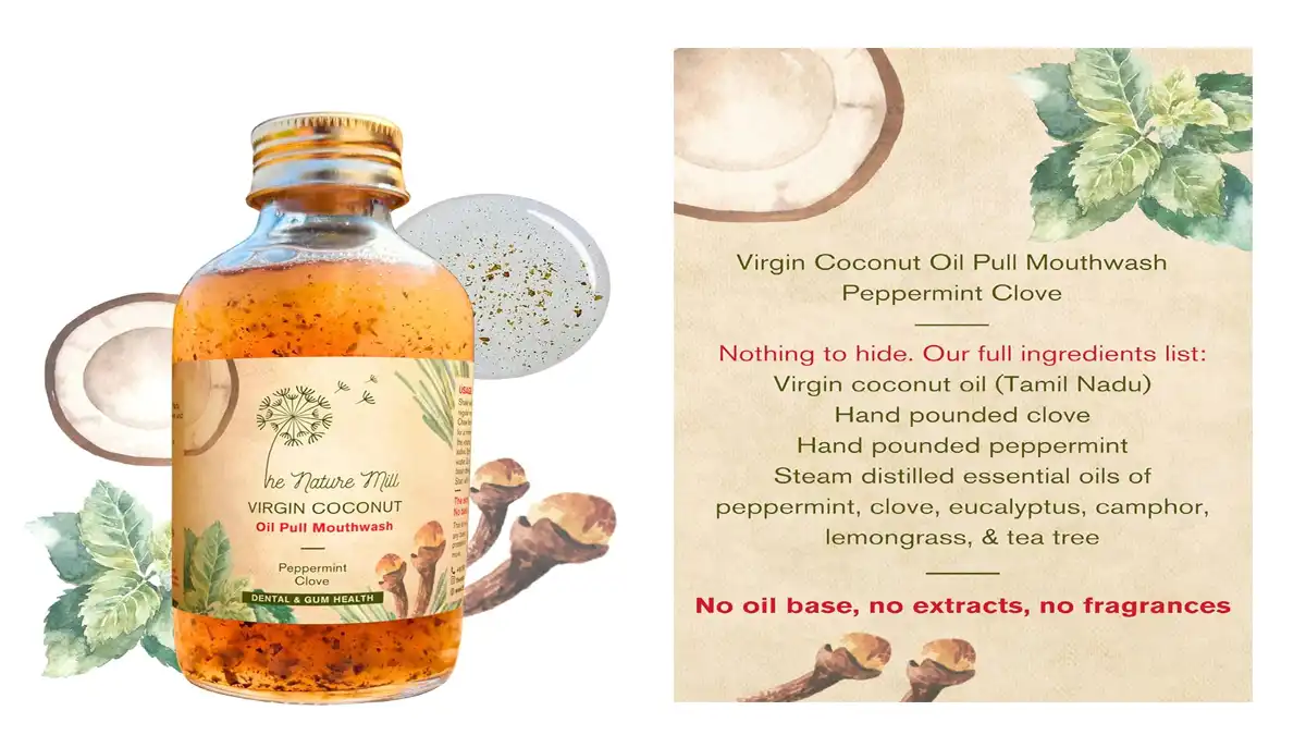 కొబ్బరి నూనె, లవంగం, పిప్పరమెంట్ వంటి ఐదు రకాల సహజ నూనెలతో రూపొందిన ఈ ఉత్పత్తి మీ నోటిలోని హానికర బ్యాక్టీరియా, మలినాలను బయటకు తీసివేస్తుంది (డిటాక్స్), చిగుళ్ళను బలోపేతం చేస్తుంది మరియు పళ్ళను సహజంగా తెల్లగా మారుస్తుంది. ఇందులో ఎలాంటి హానికర రసాయనాలు ఉండవు.