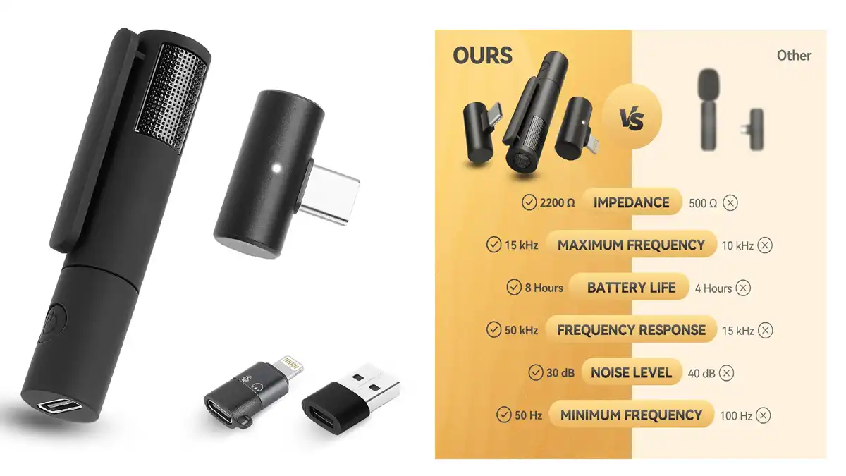 ఈ చిన్న క్లిప్ మైక్ను మీ షర్ట్కి అమర్చుకుని, రిసీవర్ను మీ ఫోన్ (Type-C పోర్ట్ ఉన్న ఆండ్రాయిడ్ లేదా ఐఫోన్ 15)కి కనెక్ట్ చేయండి. వైర్ల ఇబ్బంది లేకుండా, మీరు స్వేచ్ఛగా కదులుతూ మాట్లాడవచ్చు.