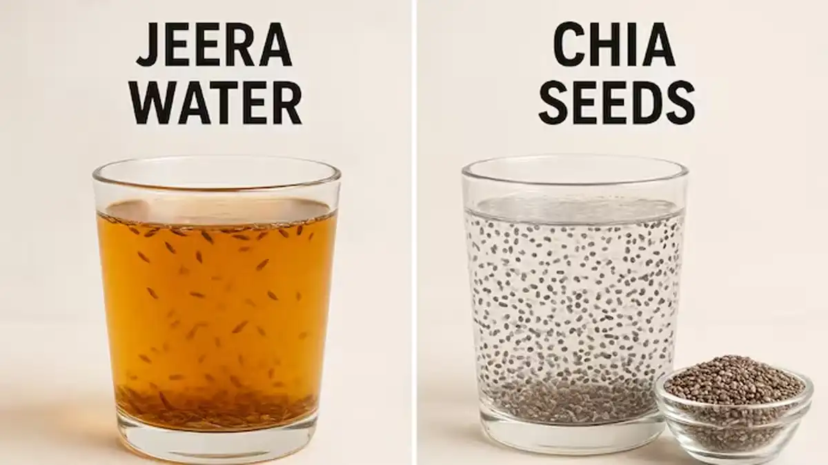 ఒక గ్లాసు నీటిలో 1 టీస్పూన్ జీలకర్ర మరియు 1 టీస్పూన్ చియా సీడ్స్ వేసి రాత్రంతా నానబెట్టండి.ఉదయం వడకట్టి, కొద్దిగా నిమ్మరసం లేదా తేనె కలిపి తాగండి. ఈ పానీయం హైడ్రేషన్, డిటాక్స్, మరియు బరువు నిర్వహణలో సహాయపడుతుంది.