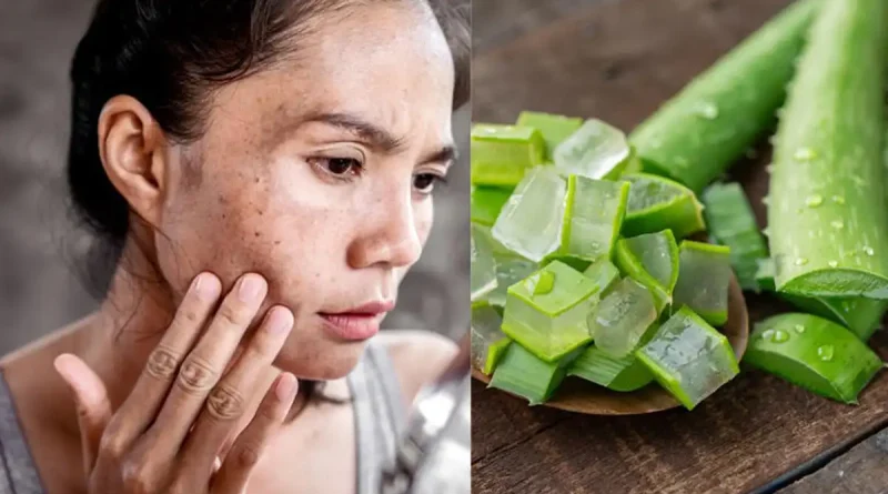 అలోవెరాలోని అలోయిన్ సహజ బ్లీచింగ్ ఏజెంట్గా పనిచేస్తుంది, ఇది మెలానిన్ ఉత్పత్తిని తగ్గించి చీకటి మచ్చలను లైట్ చేస్తుంది.