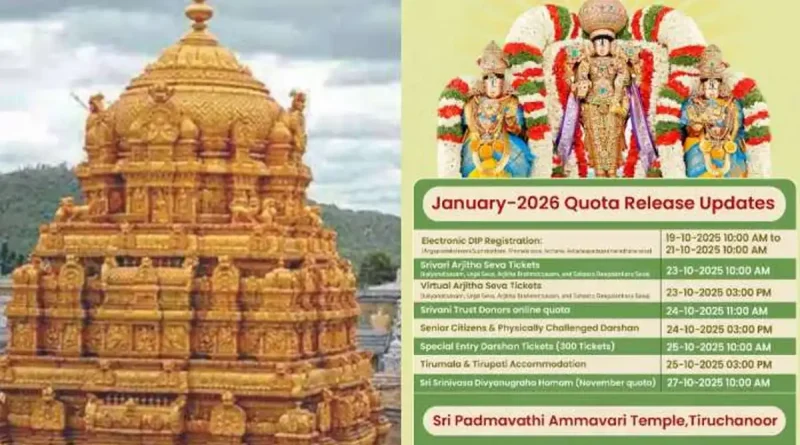 జనవరి 2026 దర్శనం & గదుల కోటా వివరాలు: