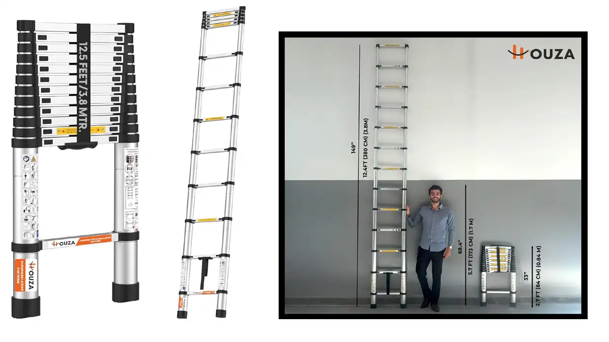ఇప్పుడు చెప్పే నిచ్చెన 12.5 Ft (3.8m) తో 13 స్టెప్స్ కలిగి ఉంటుంది. ఇంటి కోసం చాలా బాగుంటుంది. దీనిలో Extendable, Foldable, Portable, Telescopic, Weather Resistant వంటి ఫీచర్స్ ఉన్నాయి.