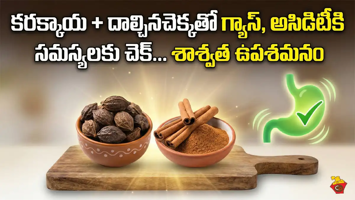 కరక్కాయ + దాల్చినచెక్క కలయిక: ఈ రెండింటినీ సమ పాళ్లలో తీసుకుని పొడి చేసి రోజూ తీసుకోవడం గ్యాస్ సమస్యకు బెస్ట్. ఈ మిశ్రమం జీర్ణవ్యవస్థను బలోపేతం చేసి, సహజ హాయిని ఇస్తుంది.