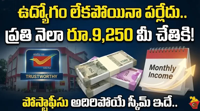 Postal Scheme:ఉద్యోగం లేకపోయినా పర్లేదు.. ప్రతి నెలా రూ.9,250 మీ చేతికి! పోస్టాఫీసు అదిరిపోయే స్కీమ్ ఇదే… మీరు ఉద్యోగం చేయడం లేదా? రిటైర్మెంట్ తర్వాత లేదా ఇంట్లో ఉంటూనే ప్రతి నెలా స్థిరమైన ఆదాయం కావాలనుకుంటున్నారా? అయితే కేంద్ర ప్రభుత్వం పోస్టాఫీసు ద్వారా అందిస్తున్న ఈ పథకం మీ కోసమే. మార్కెట్ రిస్క్ లేకుండా, 100% భద్రతతో కూడిన పోస్ట్ ఆఫీస్ మంత్లీ ఇన్కమ్ స్కీమ్ (POMIS) గురించి పూర్తి వివరాలు ఇవే.