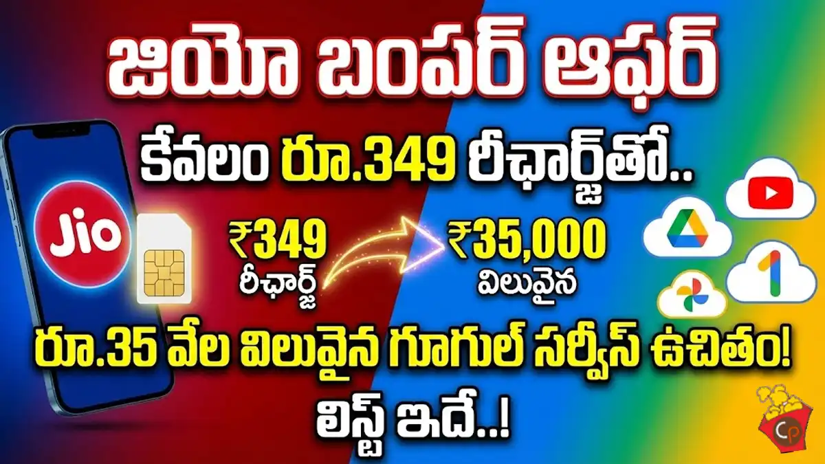 Jio Free Offer:జియో బంపర్ ఆఫర్: కేవలం రూ.349 రీఛార్జ్‌తో.. రూ.35 వేల విలువైన ‘గూగుల్’ సర్వీస్ ఉచితం! లిస్ట్ ఇదే.