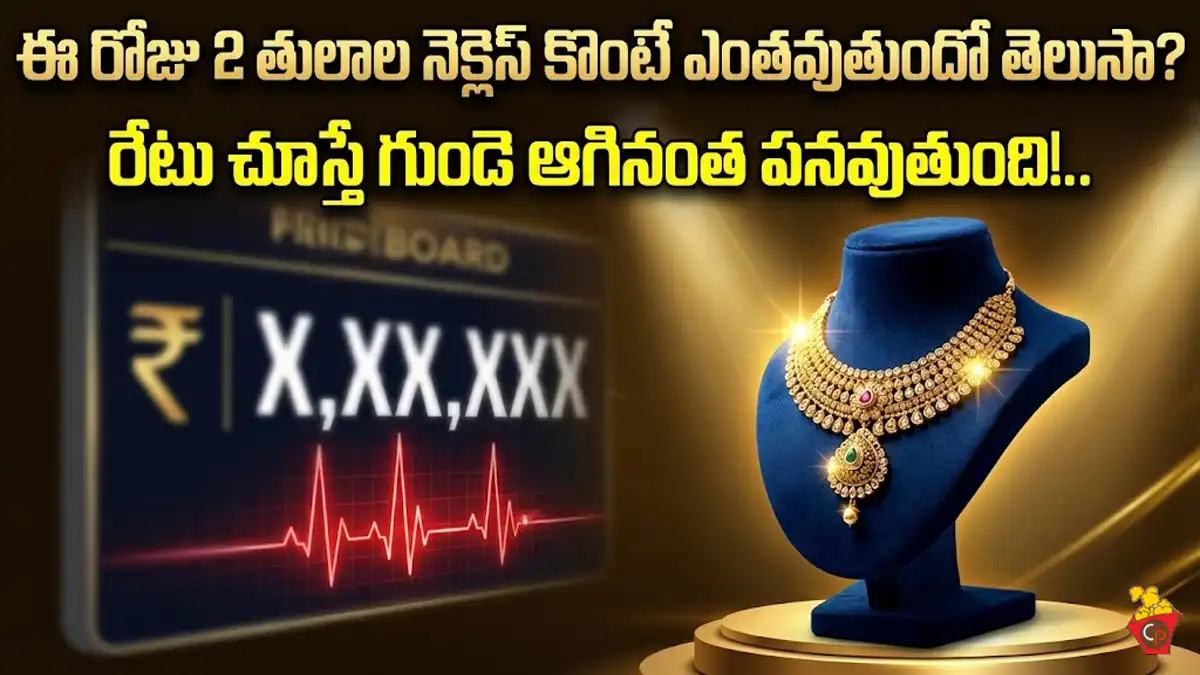 Gold Necklace Price:ఈ రోజు 2 తులాల నెక్లెస్ కొంటే ఎంతవుతుందో తెలుసా? రేటు చూస్తే గుండె ఆగినంత పనవుతుంది… 2026 కొత్త సంవత్సరంలో బంగారం ధరలు మండిపోతున్నాయి. ఈ రోజు (జనవరి 16) హైదరాబాద్ మార్కెట్‌లో ధరలు ఇలా ఉన్నాయి:24 క్యారెట్ల బంగారం (10 గ్రా): రూ.1,43,40022 క్యారెట్ల బంగారం (10 గ్రా – ఆభరణాలకు వాడేది): రూ.1,31,450కేవలం బంగారం ధర చూసి షాపుకి వెళ్తే దెబ్బతినేస్తారు. దానికి అదనంగా పడే బాదుడు మామూలుగా లేదు. ఒక 20 గ్రాముల (2 తులాల) నెక్లెస్ కొంటే బిల్లు ఎలా ఉంటుందో ఒక అంచనా వేద్దాం.