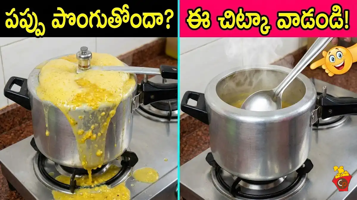Keywords: #KitchenHacksTelugu #PressureCookerTips #CookingTricks #CleanKitchenSecrets #DalCookingTips
