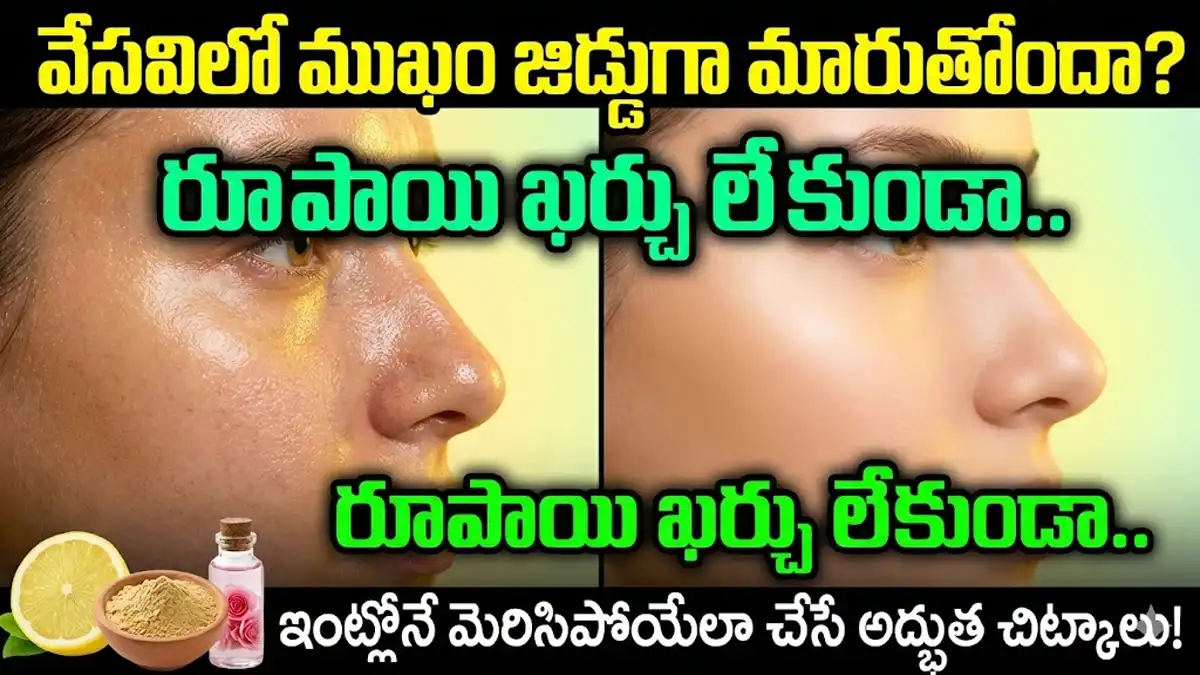 Face Glow Tips:వేసవిలో ముఖం జిడ్డుగా మారుతోందా? రూపాయి ఖర్చు లేకుండా ఇంట్లోనే మెరిసిపోయేలా చేసే అద్భుత చిట్కాలు.. వేసవి వచ్చిందంటే చాలు.. జిడ్డు చర్మం (Oily Skin) ఉన్నవారి పాట్లు అన్నీ ఇన్నీ కావు. ముఖం ఎంత శుభ్రం చేసుకున్నా, కాసేపటికే మళ్ళీ జిడ్డుగా మారిపోతుంది. అందంగా కనిపించడానికి మార్కెట్లో దొరికే రకరకాల క్రీమ్స్ వాడుతుంటారు. కానీ వాటివల్ల చర్మం దెబ్బతినే ప్రమాదం ఉంది.