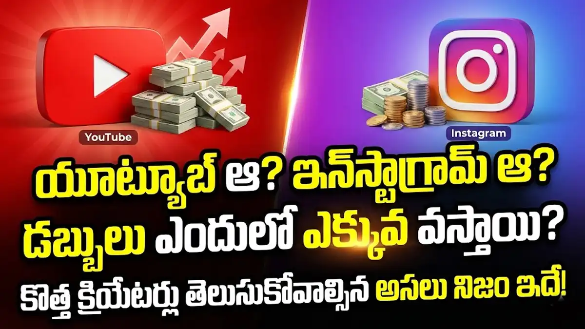 Instagram vs YouTube : యూట్యూబ్ ఆ? ఇన్స్టాగ్రామ్ ఆ? డబ్బులు ఎందులో ఎక్కువ వస్తాయి? కొత్త క్రియేటర్లు తెలుసుకోవాల్సిన అసలు నిజం ఇదే..స్మార్ట్ఫోన్ చేతిలో ఉంటే చాలు.. సోషల్ మీడియా ద్వారా లక్షలు సంపాదించే కాలం ఇది. అయితే, కంటెంట్ క్రియేటర్లకు ఎప్పుడూ ఒక సందేహం ఉంటుంది. “అసలు ఇన్స్టాగ్రామ్ (Instagram) బెస్ట్ ఆ? లేక యూట్యూబ్ (YouTube) బెస్ట్ ఆ? ఎందులో ఎక్కువ ఆదాయం ఉంటుంది?” అని.