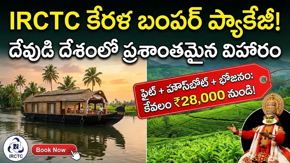 IRCTC కేరళ బంపర్ ప్యాకేజీ: ‘దేవుడి దేశం’లో ప్రశాంతమైన విహారం.. ఫ్లైట్, హౌస్బోట్ అన్నీ కలిపి బడ్జెట్ ధరలోనే..మీ ఫ్యామిలీతో లేదా భాగస్వామితో కలిసి పచ్చని ప్రకృతి ఒడిలో సేదతీరాలని ప్లాన్ చేస్తున్నారా? అయితే మీకు IRCTC అందిస్తున్న “సెలెస్టియల్ కేరళ (Celestial Kerala)” మరియు “అమేజింగ్ కేరళ (Amazing Kerala)” ప్యాకేజీలు బెస్ట్ ఆప్షన్. ఎలాంటి టెన్షన్ లేకుండా అన్నీ వాళ్లే చూసుకునే ఈ ప్యాకేజీ వివరాలు చూద్దాం.