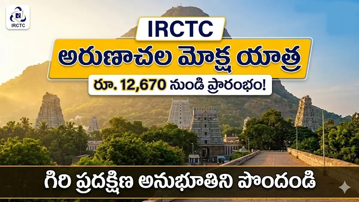 “అరుణాచల మోక్ష యాత్ర” (Arunachala Moksha Yatra) పేరుతో తక్కువ ఖర్చుతో ప్లాన్ చేసిన ఈ ప్యాకేజీ గురించి పూర్తి వివరాలు ఇక్కడ తెలుసుకోండి.