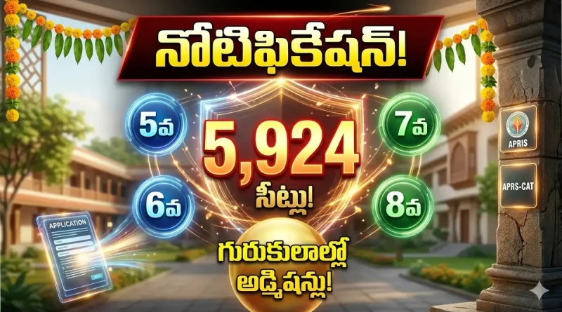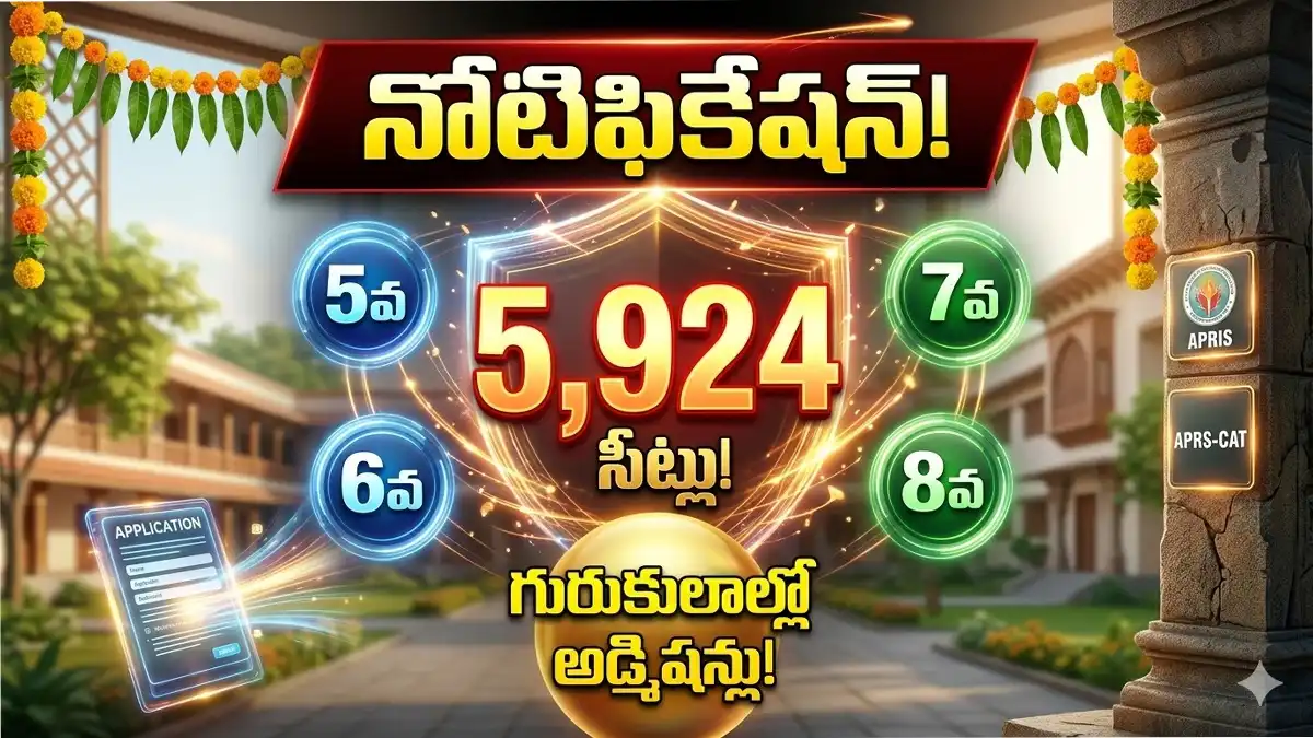 రాష్ట్రవ్యాప్తంగా ఉన్న గురుకుల పాఠశాలల్లో (AP Residential Schools) ఉచిత విద్యతో పాటు ఉచిత భోజన, వసతి కల్పించేందుకు ‘APRS CAT 2026’ ప్రవేశ పరీక్ష నోటిఫికేషన్ విడుదల చేసింది. ఈ నోటిఫికేషన్ ద్వారా 5వ తరగతి నుంచి 8వ తరగతి వరకు ప్రవేశాలు కల్పించనున్నారు. మీ పిల్లలకు ఉజ్వల భవిష్యత్తును ఇచ్చే ఈ గొప్ప అవకాశం గురించి పూర్తి వివరాలు ఇప్పుడు తెలుసుకుందాం.