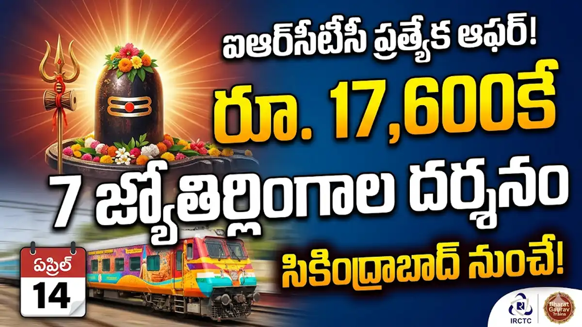 IRCTC Tourism Package:సికింద్రాబాద్ టూ సప్త జ్యోతిర్లింగ యాత్ర: రూ. 17 వేలకే 7 పుణ్యక్షేత్రాల దర్శనం.. భక్తులకు ఐఆర్సీటీసీ (IRCTC) తీపి కబురు అందించింది. ఏకకాలంలో ఏడు జ్యోతిర్లింగాలను దర్శించుకోవాలనుకునే వారి కోసం ‘సప్త జ్యోతిర్లింగ యాత్ర’ పేరుతో ప్రత్యేక ప్యాకేజీని ప్రకటించింది. ఏప్రిల్ 14న సికింద్రాబాద్ నుంచి ఈ యాత్ర ప్రారంభం కానుంది.