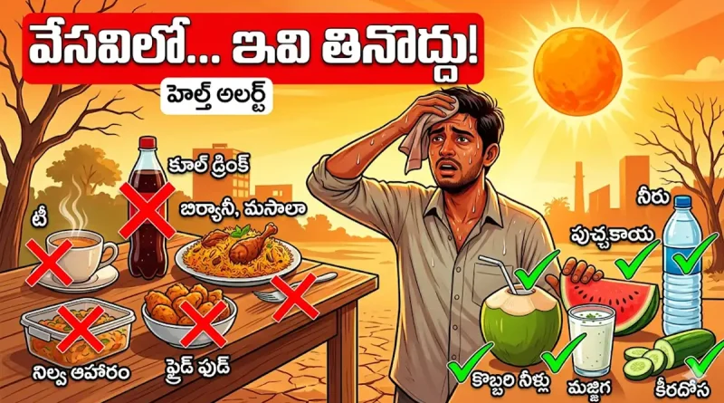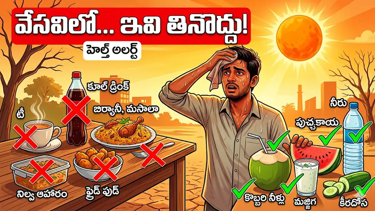 ప్రస్తుతం ఎండలు దంచికొడుతున్నాయి. ఉదయం 9 దాటితే చాలు బయటకు అడుగుపెట్టలేని పరిస్థితి. ఈ మండు వేసవిలో మన శరీరాన్ని చల్లగా, ఆరోగ్యంగా ఉంచుకోవడం చాలా ముఖ్యం. అయితే, ఎండ వేడిమికి తోడు మనం తినే కొన్ని రకాల ఆహారాలు మన ఆరోగ్యాన్ని తీవ్రంగా దెబ్బతీస్తాయి.