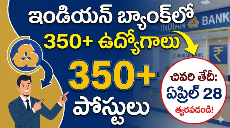 Indian Bank Jobs:బ్యాంకింగ్ రంగంలో స్థిరపడాలనుకునే వారికి ఇండియన్ బ్యాంక్ తీపి కబురు అందించింది. దేశవ్యాప్తంగా ఉన్న తన వివిధ విభాగాల్లో 350 స్పెషలిస్ట్ ఆఫీసర్ (SO)